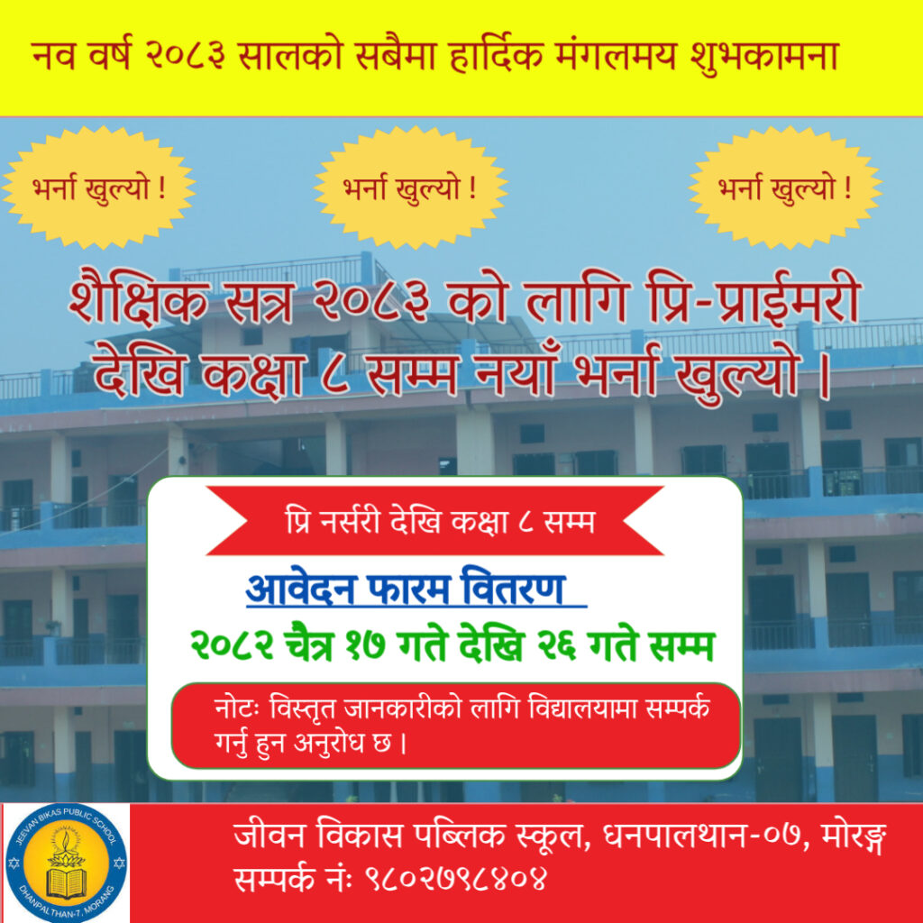 Jeevan Bikas Public School is a premier institution dedicated to providing quality education and fostering holistic development. At Jeevan Bikas Public School, we believe in an education system that goes beyond textbooks. Our curriculum is designed to encourage critical thinking, creativity, and practical knowledge. With a team of highly qualified and dedicated educators, we ensure that every child receives the attention and guidance they need to thrive in a dynamic world.